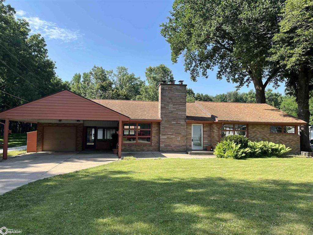 Solid, well built Brick rancher in lovely location on a corner lot with an extra shop/outbuilding. It offers a 1 car garage plus a covered carport that fits 2 cars. The main floor has hardwood floors under carpet. There is a formal dining area plus eat in kitchen. Desk in bedroom stays. Table in laundry room stays. 2 fireplaces have not been used in many years and should not be used until inspected. This home has gas forced air furnace and central air. The baseboards seen on main floor were not removed after the transition.