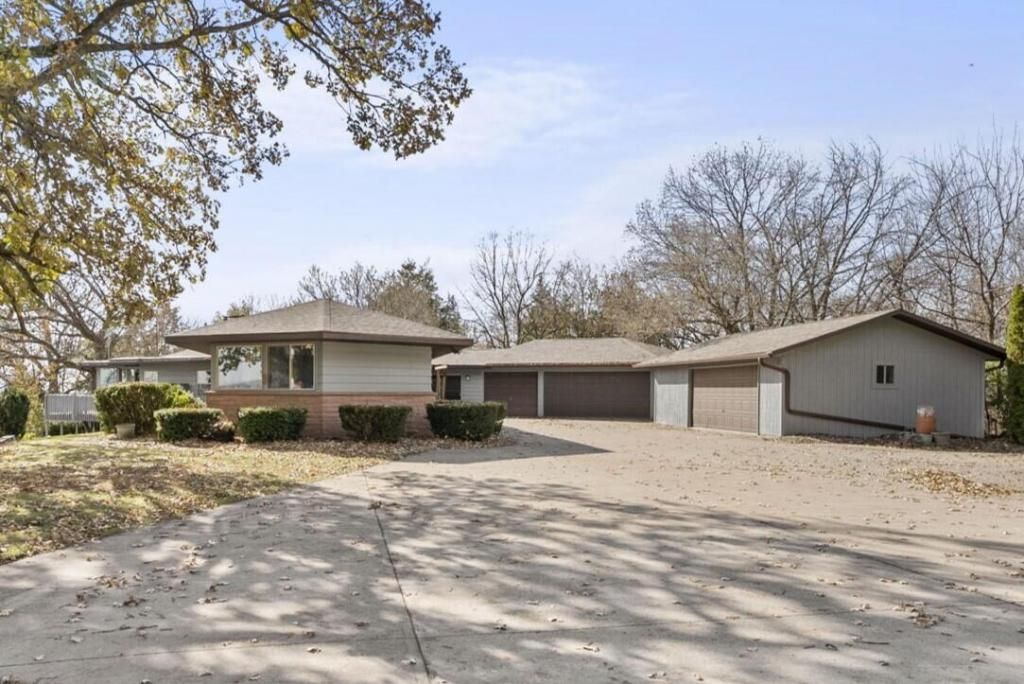 Frank Lloyd Wright inspired architecture! This home was built for a doctor in 1952. It was designed for a river view from every room. Enter into a breezeway & natural slate flooring. The family room is shaped as a hexagon with open beams flaring out with a floor to ceiling fireplace. Unique diamond shaped copper hood & raised hearth provide a nice focal point. The convenient open floor plan allows natural light & river views into all the rooms. The bedrooms have dressers built into the closets & built in writing desks in several rooms. Finished basement with additional fireplace, bathroom and laundry room. Tons of storage available in the attached 3 car or detached 2+ car garages. Spectacular river view plus wooded surroundings provide the ultimate private retreat.Adjoining land for sale.