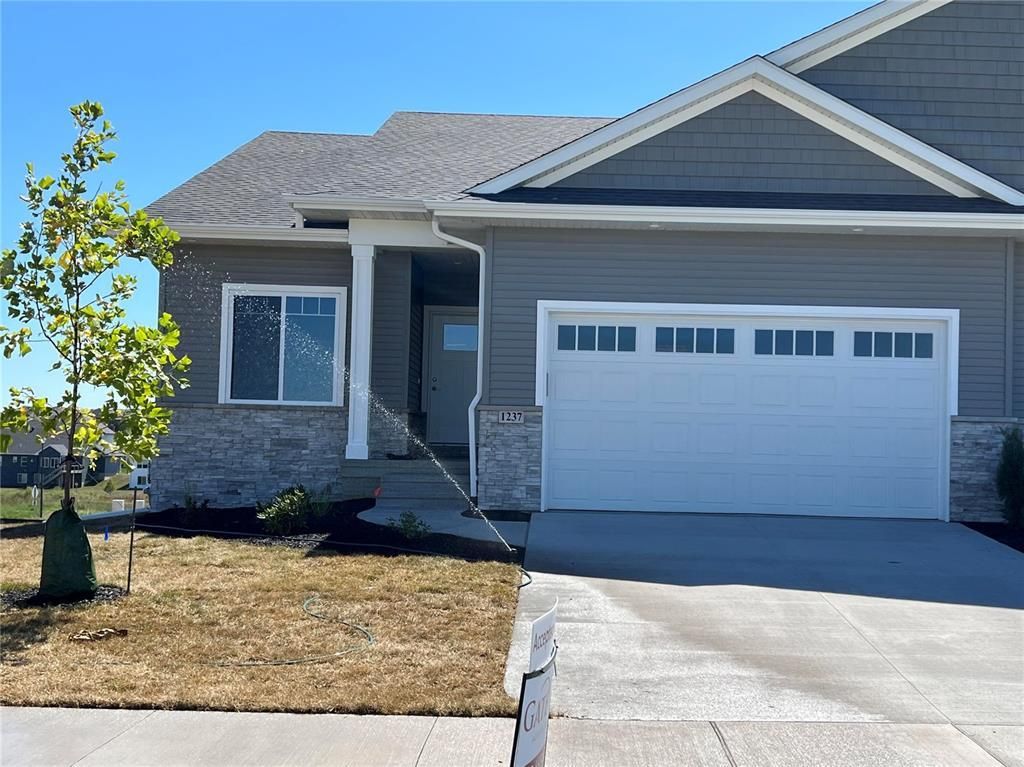 PHOTOS OF THE ACTUAL PROPERTY. Brand new walkout zero lot floor plan with upgrades throughout. 2 bedrooms on the main floor and 2 bedrooms in the lower level. Great room features ceiling beams, fireplace with shiplap surround, and opens out to the covered deck. White kitchen cabinets with tile backsplash. Painted white trim throughout. Hard surface countertops in the kitchen and bathrooms. Primary bedroom has access to the laundry room. Primary bathroom has a tiled shower. Left Side. One side has black lighting/hardware and the other side has brushed nickel lighting/hardware. Property does not have sod yet. Front photos have been touched up to show grass.