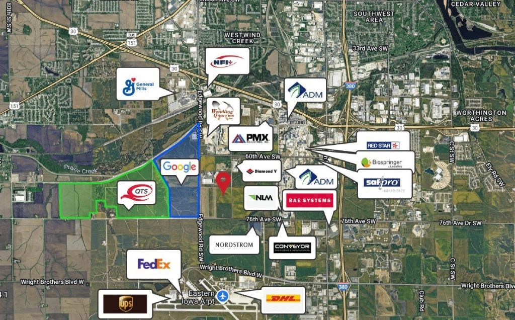 Exceptional 40± acre development tract located along 26th Street SW in Cedar Rapids, IA ? directly in the heart of the city's fastest-growing technology and data center corridor. The property sits in the immediate path of development and is surrounded by major infrastructure investment, including Google's and QTS's newly established data center campuses. Municipal water and sewer are available to the site, significantly reducing development timelines and costs. With strong access, scalable acreage, and proximity to high-capacity utility infrastructure, the site is well suited for data centers, industrial users, technology campuses, advanced manufacturing, and large-scale commercial development.