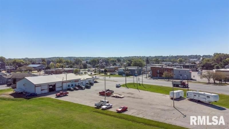 Over 4,000 s/f of open shop and office space located in the Business District of Milan, Ill. on a heavily traveled, 4 lane section of Highway 67. There are 9 overhead doors on the shop side, each measuring 12' X 12'. Every overhead door contains it's own work bay. Floor drains throughout the shop floor area. A separate, heated wash bay with steel lined wall for easy maintenance. This property sits on 3.5 acres (MOL) and has a large, black top parking area that could be used for many different business options. Currently a high volume automotive repair shop and formerly a car dealership. It is less than 7 miles from the QC International Airport.