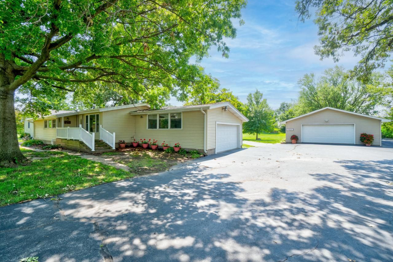 This spacious ranch home has a mother-in-laws apartment and a business studio. The ranch home sits on 1.98 acres and features 4 bedrooms, 1 non-conforming bedroom, 4 bathrooms, family room, living room, eat-in kitchen with double oven & built-in ceramic stovetop, formal dining room, fireplace, finished basement, and 2 car garage. Primary suite features large walk-in closet and 3/4 bath. The mother-in-laws apartment is attached to the main home and has a passthrough exterior door between the units. Added on in 2003, it is ADA compliant and features 1 bedroom, 2 bathrooms, office, main floor laundry, attached 1 car garage. The second building includes a two car garage/shop with a restroom and a professional recording studio, which could accommodate a number of other business models.